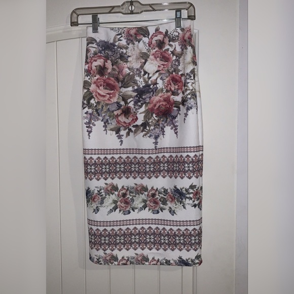 polyester/spandex material pencil skirt. great condition, no flaws! it is a size small. i’m 5’9” and it hits at the knee.