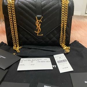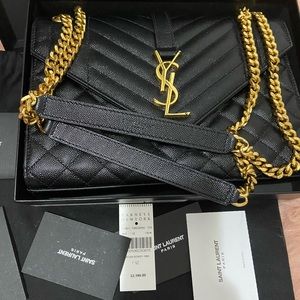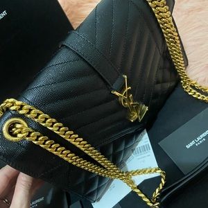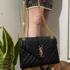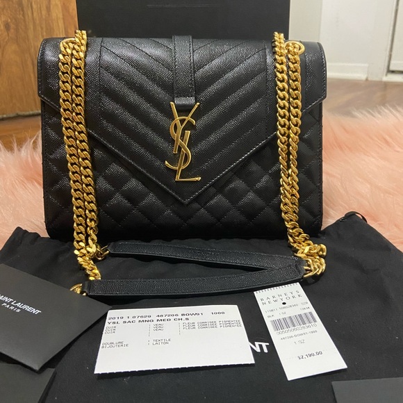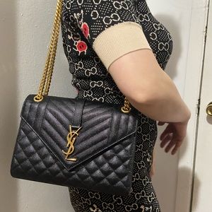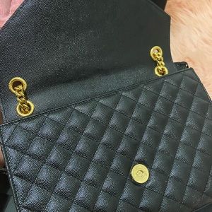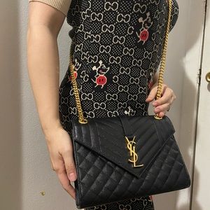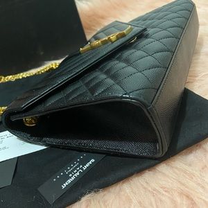Saint Laurent shoulder bag in chevron- and diamond-quilted grain leather.