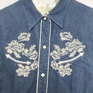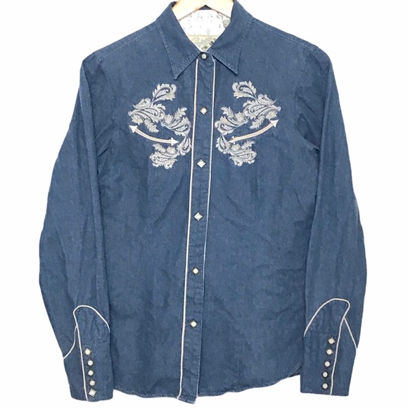 Diamond shaped Pearl snaps up the front and on the sleeve cuffs
