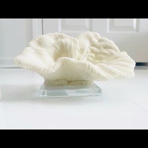 New White Sculpture Coastal Decor on glass stand. Brand new perfect condition.