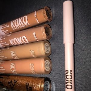 !!GLITTER GLOSS & HANDBAGHO LIPSTICK N LINER IS SOLD!! All authentic! Kylie cosmetics bundle KKW & KOKO COLLAB 💋 Kylighter in shade coconut creme, KKW blush shade grace, kkw creme lipsticks in shades Kimberly & Kim, koko lipsticks shades allergic to bullshit & handbag ho & handbag ho liner. Wholesale & Reseller friendly pricing. ‼️All items are authentic & have been swatched & sanitized!! ‼️ Free gift with purchase 💋
