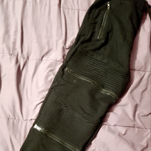 Comfortable black moto joggers with styled zippers.