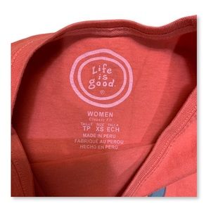 Hello buyers! Life is Good T Shirt Coral size XS. In Great Condition. Message me if you have any questions or to combine orders. Please follow us and checkout our other listings for great deals on great items. We drop 3/5 items daily typically in the evening. We appreciate you!