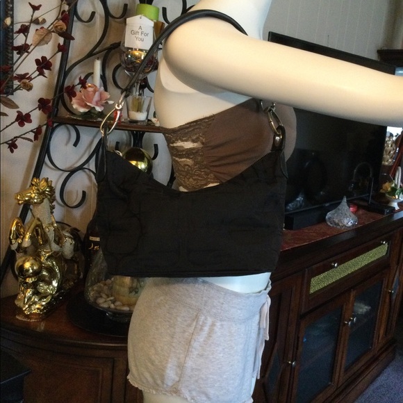 Express shoulder bag in black color.