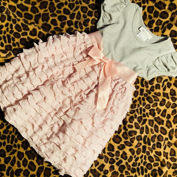 Girls size 4T Bonnie Jean Gray & Pink Ruffle Dress w/Satin Bow. Excellent condition. No stains or damage. Price negotiable, make an offer. Ships next day.