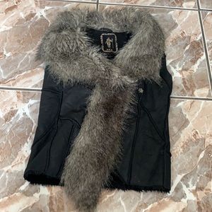 Beautiful vest size small. 100% genuine leather. Polyester fur