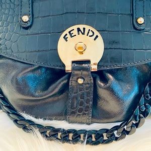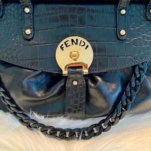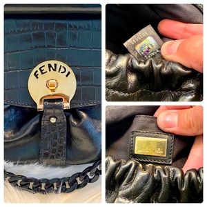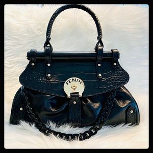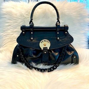 Gorgeous Authentic Fendi Magic Bag! This has been professionally dyed in black lacquer & sealed, good as new! Outside is calf leather, buttery soft! No flaws to mention! Handles, gold hardware flawless condition. Black removable lucite chain added, wear as satchel or shoulder! Fendi bags are classic & timeless, can dress up or down! Poshmark will authenticate ❤️