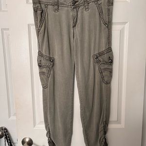 Beautiful cargo pants, ruched bottom with ties. Just don’t fit anymore. Very comfortable and soft.
