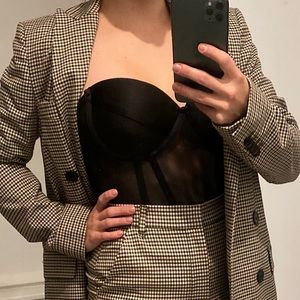 Purchased for 350$ and worn 1 time. Looks amazing with everything. For a woman 5-5’5 with b/c cup