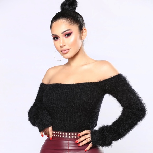 Off The Shoulder Fuzzy Sweater