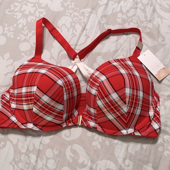 Brand New with Tags. Cacique plaid Christmas bras! Front closure, boost plunge, perfect and absolute adorable! Please be advised that I have dogs so if you have extreme dog allergies please be cautious!