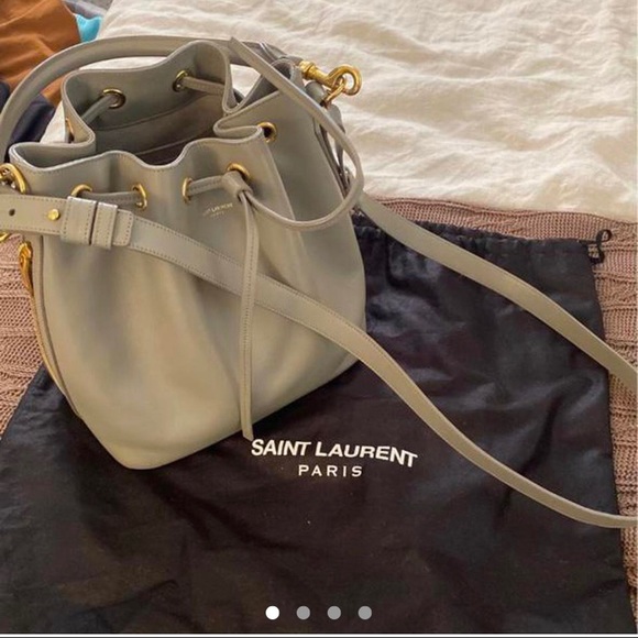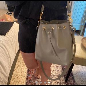 Great condition! Only flaw is some discoloration on the inside. Grey/taupe color with gold hardware. Good size, just a little too big for me :)