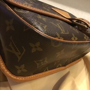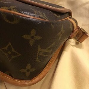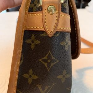 Canvas is in great condition, this is a vintage piece so canvas is thicker but there is normal overall wear on purse.