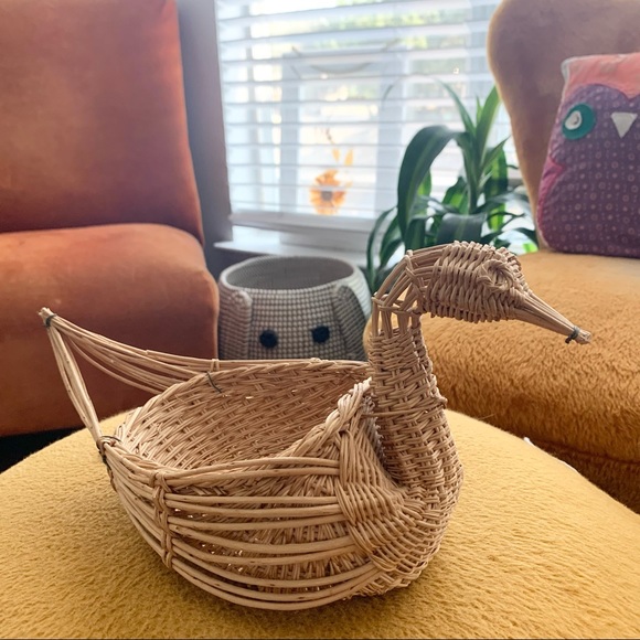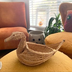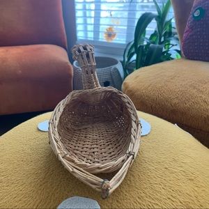 Vintage woven wicker swan duck basket that your fruit, candy, jewelry, planter, etc. would sit very nicely in.