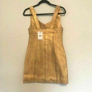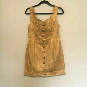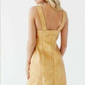 New! Free People Dress Goldie Mini Genuine Leather Button Front Reatail $300 Washed leather mini dress featuring bronzed button closures down the front.
