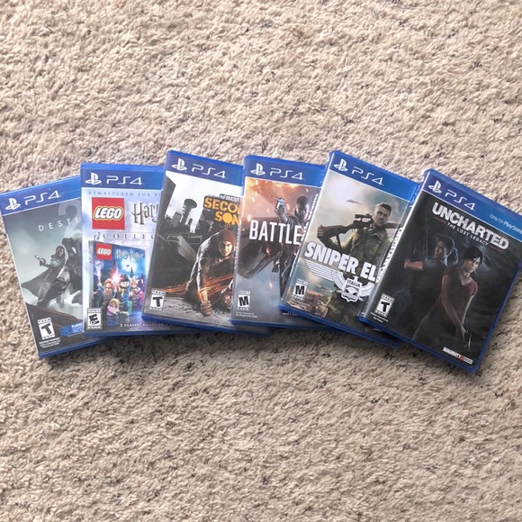 PS4 VIDEO GAME BUNDLE, Lego Harry Potter, Uncharted: The Lost Legacy, Sniper Elite 4, Battlefield 1, Infamous Second Son, Destiny 2