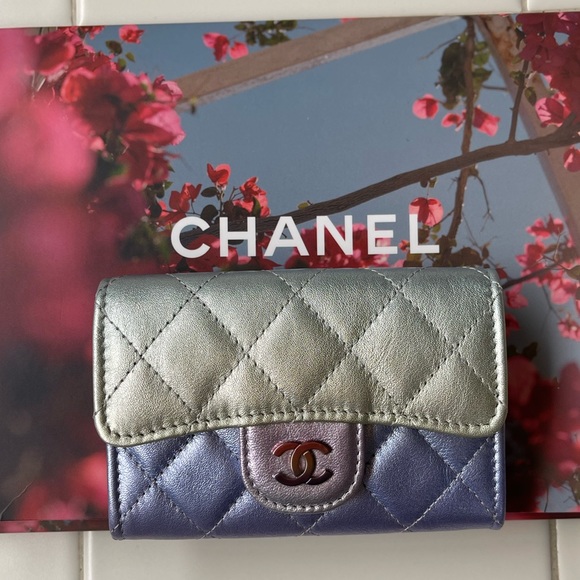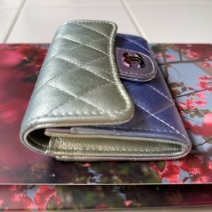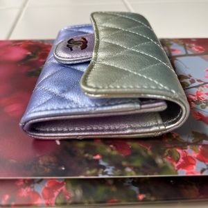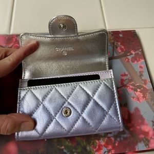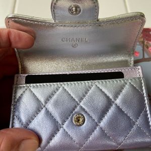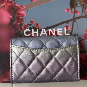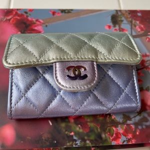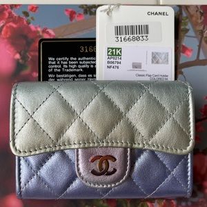 💕BNIB Authentic Chanel Classic Card Holder in Rainbow Iridescent Calfskin Silver/Blue/Yellow /Purple Combo.