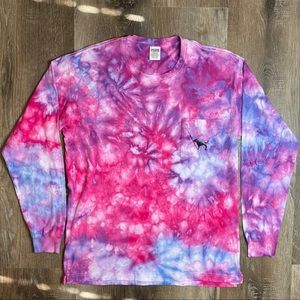Give yourself or someone else the gift of tie dye this season with this gorgeous one of a kind hand dyed vs PINK long sleeve campus pocket tee!