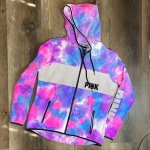 One of a kind VS PINK custom neon tie dye athletic full zip hoodie