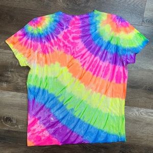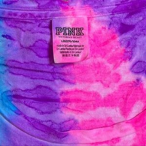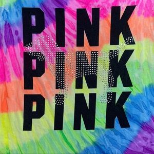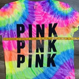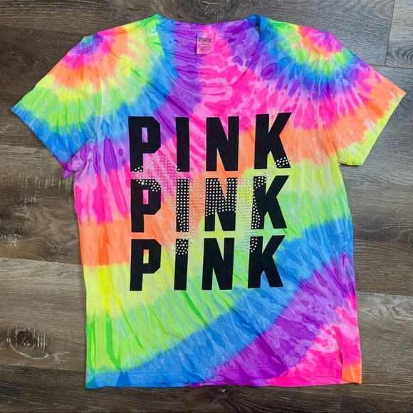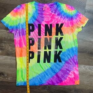 Stunning and bright custom fluorescent rainbow tie dye VS PINK short sleeve bling campus t-shirt