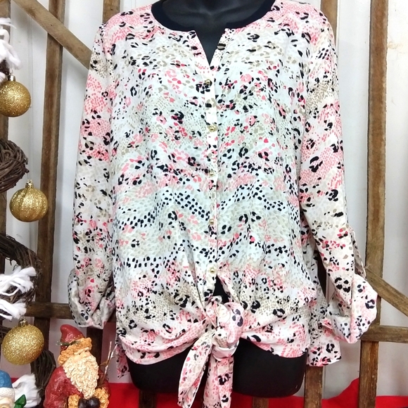 Beautiful Rafaela print top. EUC. Perfect fabric and colors for Spring and Summer. layer it and it's a perfect combo for Fall or Winter.