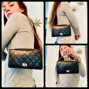 Authentic Chanel purse, a long leather quilted reissue lock wallet with onyx chain added. Chanel wallet purses are a great investment, Prices in Chanel stores jumped by 35% for Christmas! Professionally restored, dyed in black lacquer, cleaned & sealed, custom acrylic dot pattern. The outside is black, the inside is black foiled leather & silk pockets. This Chanel is the perfect size for daily use, will hold cards, cash, some keys and an iPhone! authenticity sticker intacted, shown above. Snap closure added for extra security! 6 pockets & 8 card slots. Measures 7.5”x 4.5”. Shoulder length. Posted on all sites, will go fast! Authentic! Posh will authenticate!