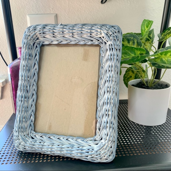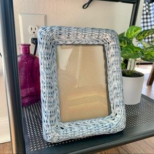 Light blue woven wicker basket like picture frame