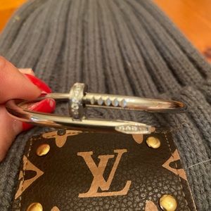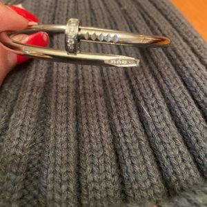 Hello, this is a very beautiful bracelet! I bought it from a boutique that I shop at. I believe it’s inspired, it would have been way more expensive if it was real. I only wore it on a few occasions. It’s silver with little crystals or rhinestones that look like diamonds. Everything I buy there is beautiful and very nice quality. Price is firm, because I’ve only had it two months.