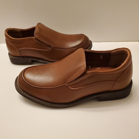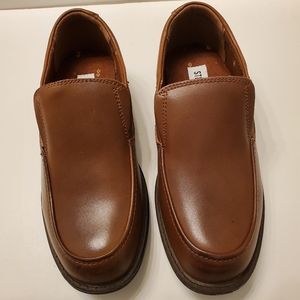 Tan boys Steve Madden Shoes size 1. Look almost new. Worn only a couple of times as you can tell from the pictures. These are in very good condition. Check the pictures of the toes. Elastic on sides of tongue make for easy on.