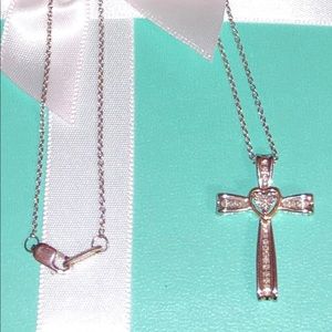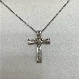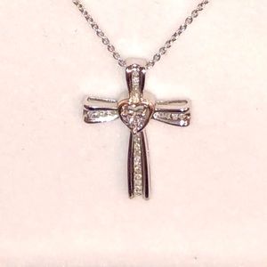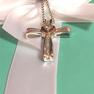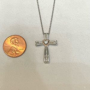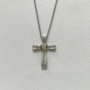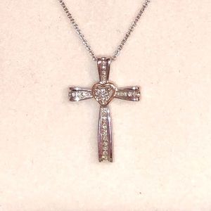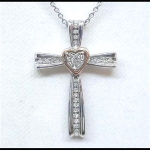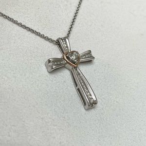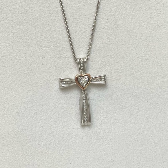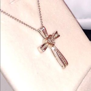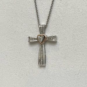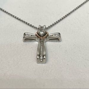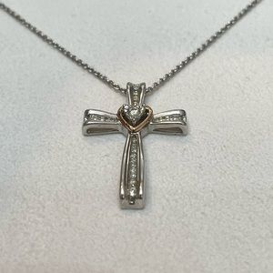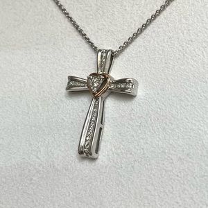 NWOT Genuine .22ctw Diamond 10K Rose Gold and Sterling Silver Cross Necklace, 18”.