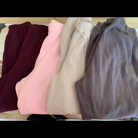 @_megancook added the pics! I have 5 pair total. The pink looks washed out in the photo but they are very “baby pink”. The dusty purple ones are PacSun brand, size Large, no drawstring. If you’re interested, let me know which ones you want and I’ll create a separate bundle for you with a great discount and free shipping 😊