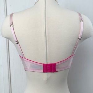Victoria’s Secret push-up bra. Hot pink lace, baby pink stain, and little crystals! Labeled size 34D.