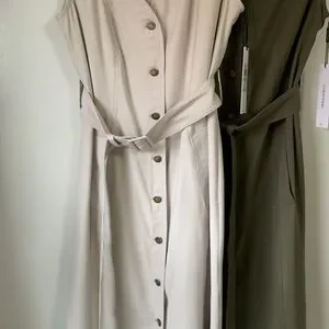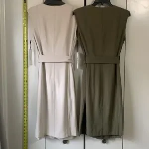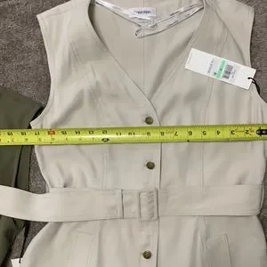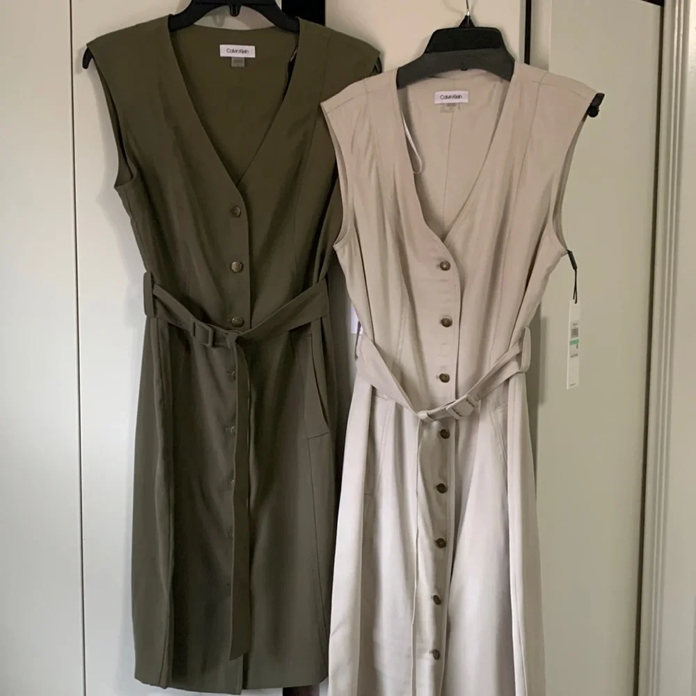2 NWT Calvin Klein V Neck Button Front Sleeveless Sheath Belted Dresses