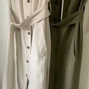 Features waist cinching belts and pockets!