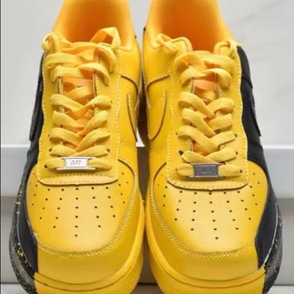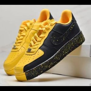 🔥 Custom Nike Air Force 1 Yellow & Black cushion breathable gym, walking; gym or running shoes!