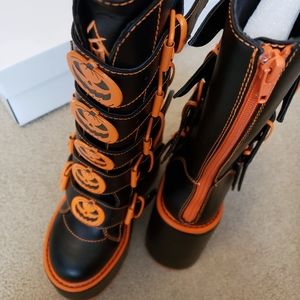Brand new, never worn, still in original box and packaging! Perfect for a spooky Halloween fan since they have jack-o-lantern pumpkins all the way down on the buckle straps.