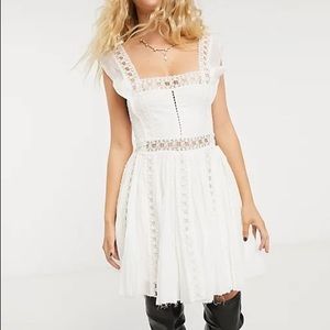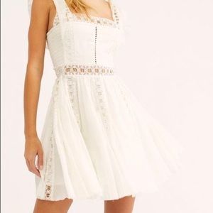 Free people Verona mini dress. Frilly white doily. Cute Easter/ spring dress. Worn once for a quick photo shoot. Size small
