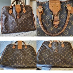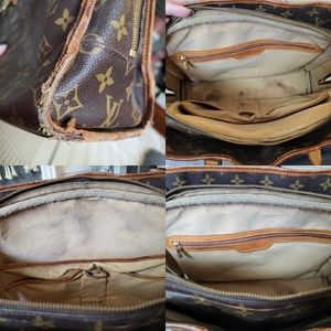 Outside monogrammed leather in great shape, Inside of bag is in poor condition- Multiple stains on the interior, the inner zipper pocket and other pockets have a lot of peeling & stickiness. Handles and lining around the bag are worn and discolored.