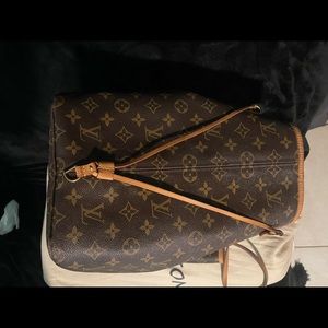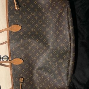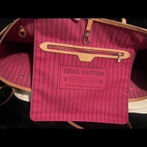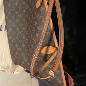 Very much love this purse! I’m just not wearing my Louie like it should be and collecting other things at the moment! This was purchased at the boca town center here in Florida in 2019. This version is the biggest out of the three never fulls. It does not come with the box because I no longer have it, the dust bag I’ve been using for a while now as one of my pillow cases sorry about that heheh. The pouch that comes with this purse I sold separately here on Poshmark. Any questions please ask I’ll be happy to help!