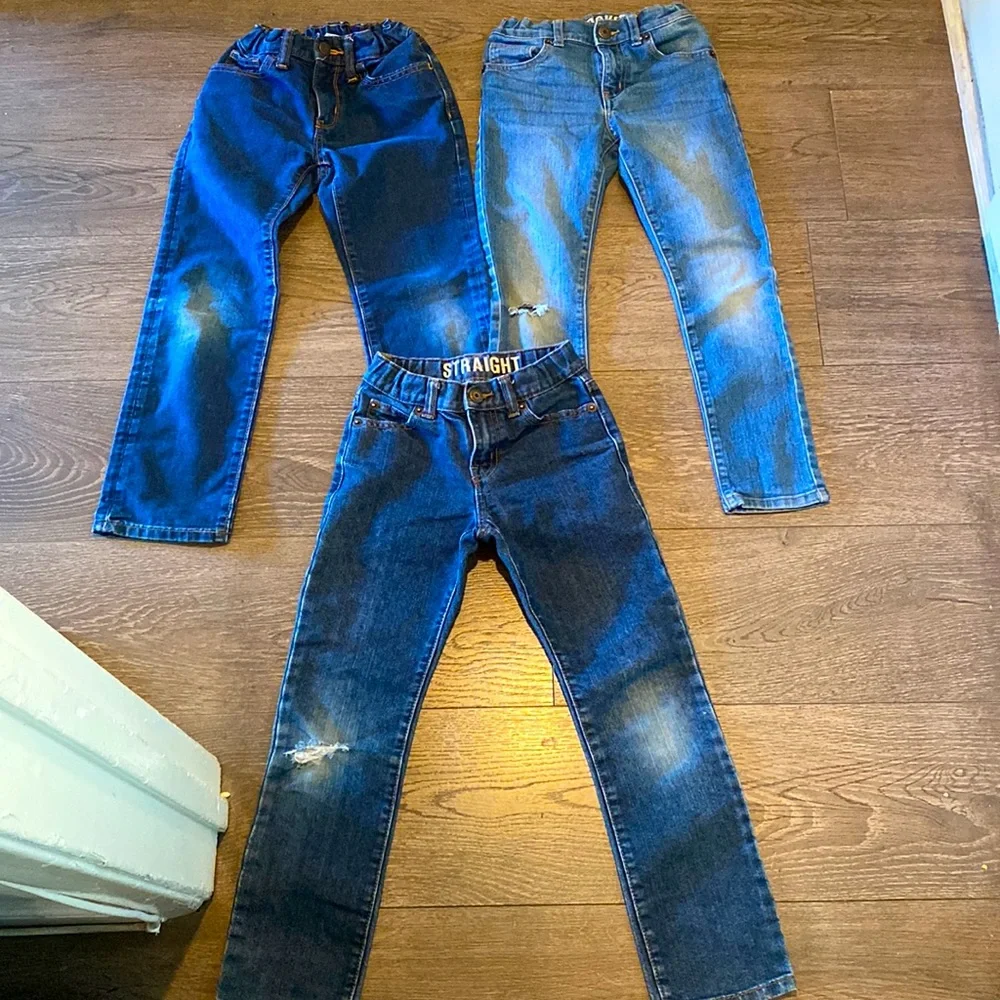 Great condition . 2 of the jeans have a slit at the knee .