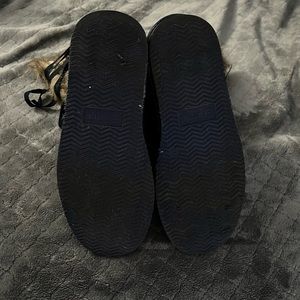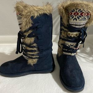 Navy blue/tan/cream/burgundy. Size 8. Worn once.