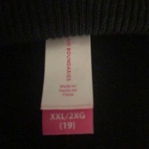 Reposhing this item I purchased. Loved it, but I never wear it. I have worn once since purchased and not for long so pictures are still accurate in showing the quality and wear of the item. It’s a cute sweater though with a triangle shaped hole in the chest brand is no boundaries size is XXL but it’s a smaller fitting item fits like a large, so it maybe a juniors?