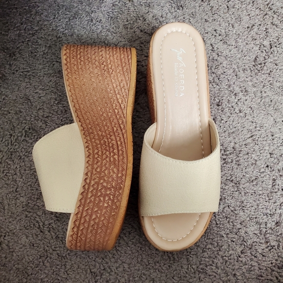 Faux braid platform wedge slides size 8. Perfect for spring and summer, very lightweight. Never worn, only tried on. No imperfections or flaws.