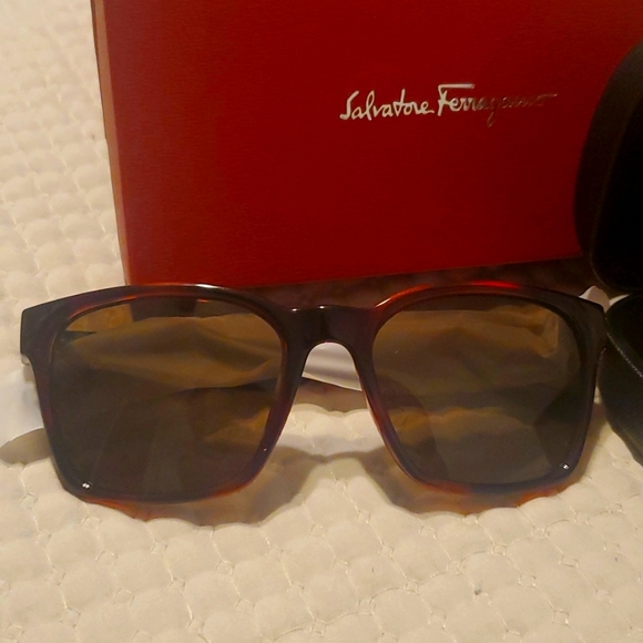 Salvatore Ferragamo men sunglasses,new with tag.Size: 55-18-140mm (eye-bridge-temple) - Frame Color: Black, Tortoise,Lens Color: mono grey (black), mono brown (tortoise), smoke (blue) - Made in Italy