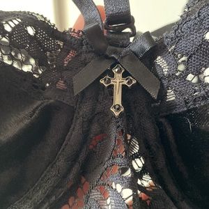NWOT KILLSTAR Velvet Onyx Boudoir Bra. Only tried on - thought I would keep- but my bust is too big. Perfect condition. Sexy lace neck strap with black and silver cross charm.