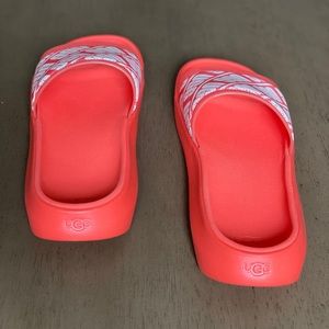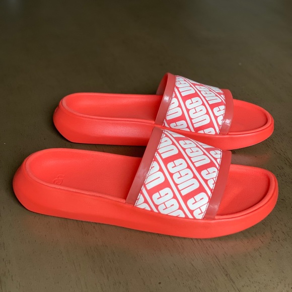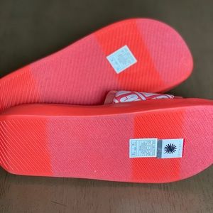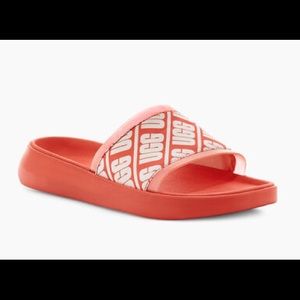 Brand new in box. metallic upper for reflective flare. Featuring contoured rubber soles, this slide almost travels almost anywhere with elegant ease. Pair with anything white, or cut-off denim shorts and a tee.