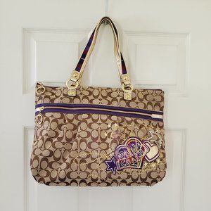 • Coach Poppy Tartan Plaid Applique Glam Tote