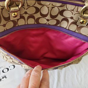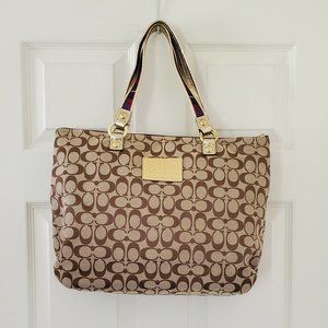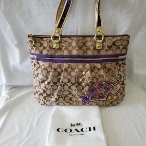 Authentic Coach Poppy Tartan Plaid Applique Glam Tote 15882 Khaki/Multicolored $498 - RARE