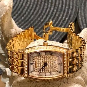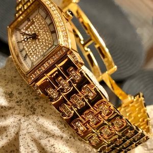 {Beautiful woman’s croton watch in EXCELLENT condition! Runs as should.. pictures do no justice this watch is gorgeous and looks Like a Diamond $20k watch! Very well made.. the stones are cubic zirconia and the watch is plated in 23k gold.. if you have any questions please feel free to message me..}