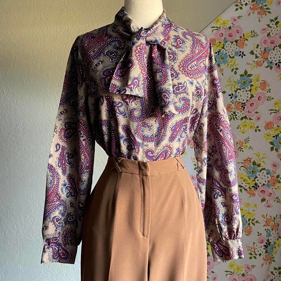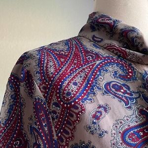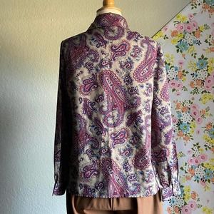 VINTAGE 60S 70S PAISLEY LONG SLEEVE BUTTON UP BLOUSE